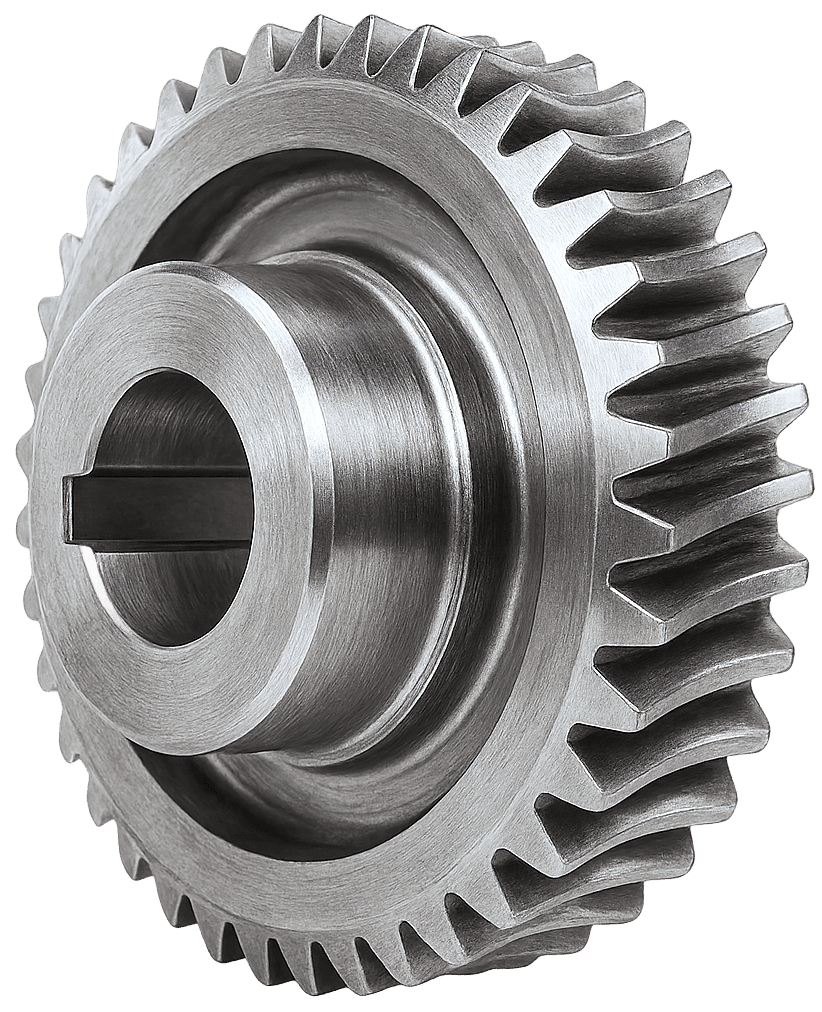Зубья расположены под углом к оси, что позволяет более плавно и тихо передавать крутящий момент. |