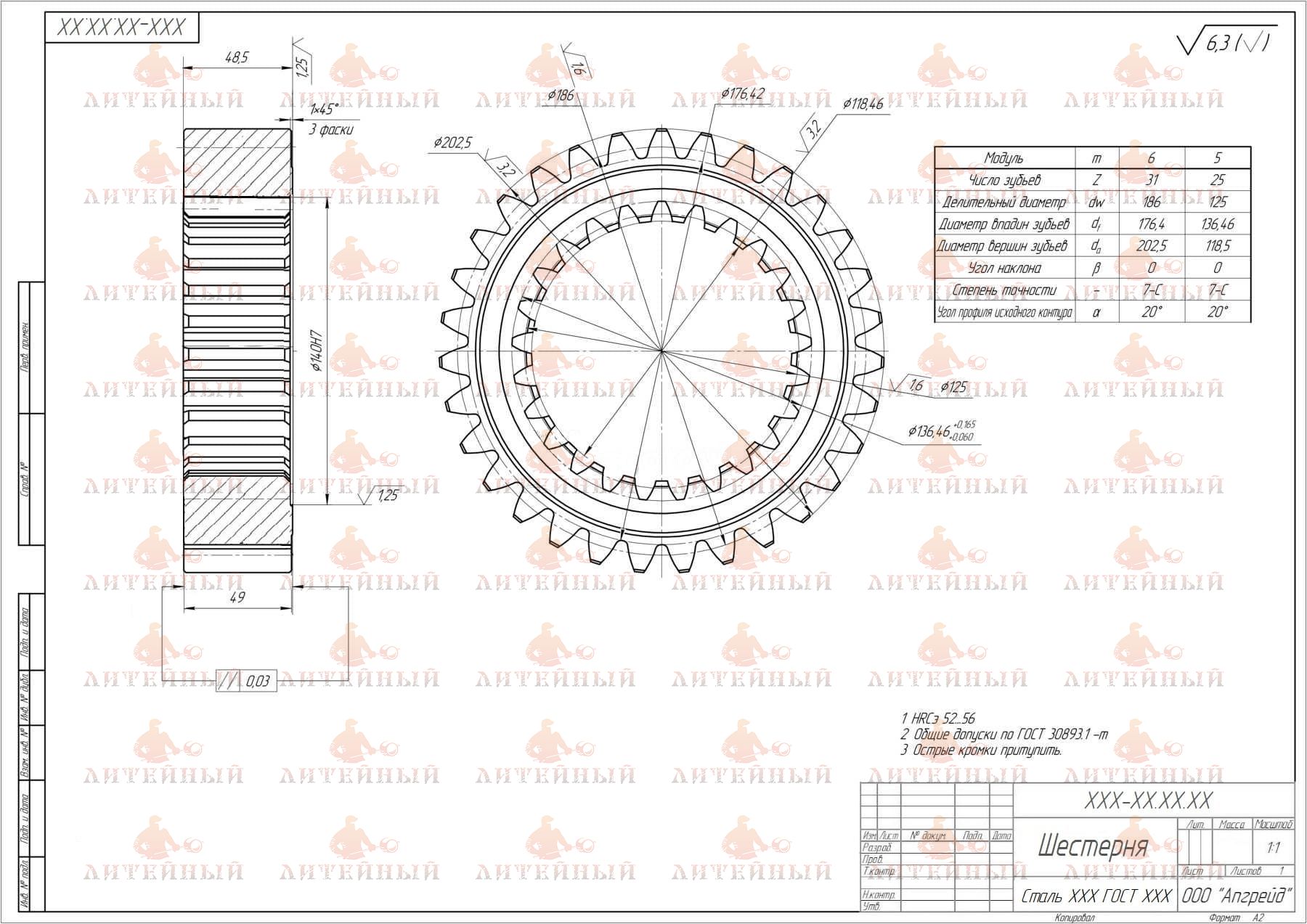 ООО Апгрейд оказывает услуги по изготовлению зубчатого колеса с внутренним зацеплением любой сложности на заказ по чертежам с учетом всех требований Клиента: