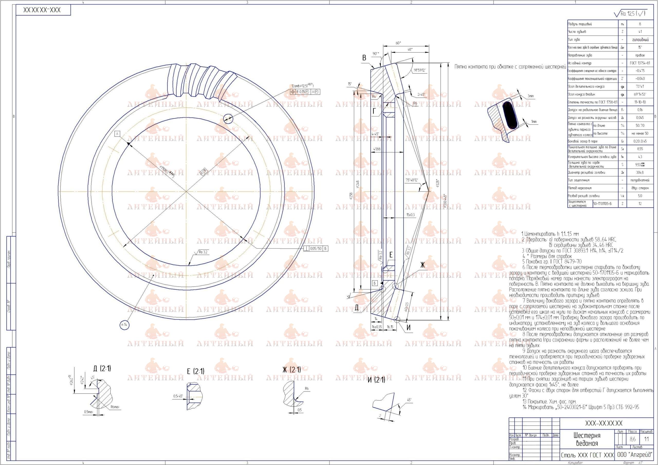 ООО Апгрейд оказывает услуги по изготовлению зубчатых конических гипоидных колес любой сложности на заказ по чертежам с учетом всех требований Клиента: