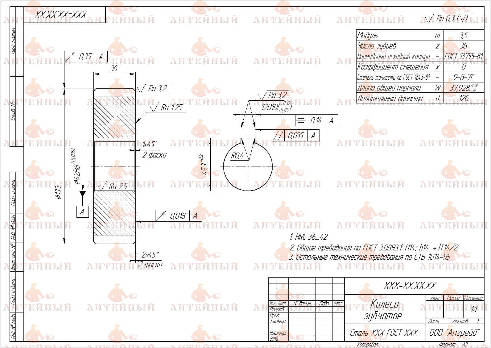 Для тяжёлых условий выбирают закалённые колёса с шлифованным профилем, для лёгких и среднескоростных передач — нормализованные с точностью 8-9 класса.