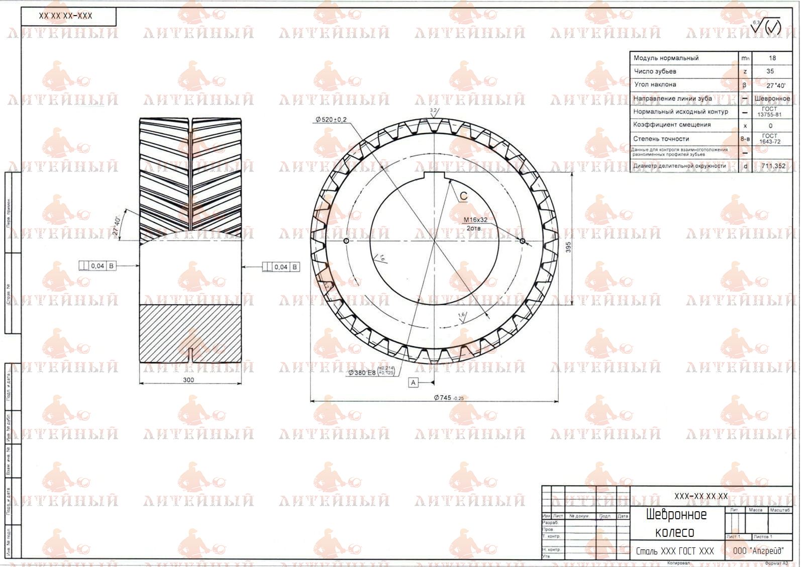 - Изготовление цилиндрических шевронных колес по образцу при отсутствии чертежей (востребовано при импортозамещении и изготовлении деталей для спецтехники).