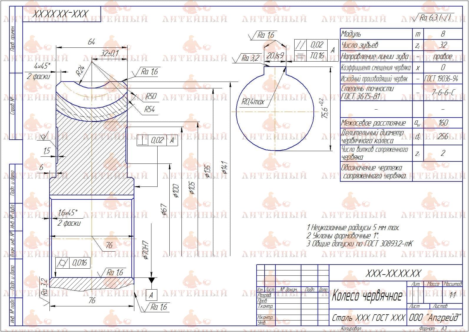ООО Апгрейд оказывает услуги по изготовлению зубчатых червячных колес любой сложности на заказ по чертежам с учетом всех требований Клиента: