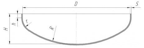 H – общая высота днища