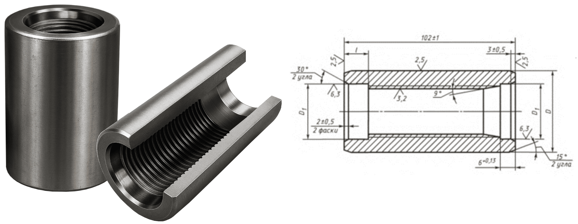 Изготовление муфт устьевых штоков на заказ по чертежам Клиента