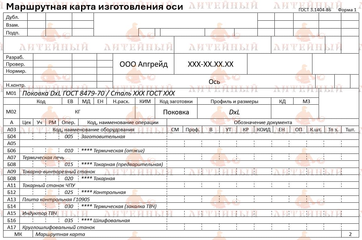 Заготовки для изготовления осей выбираются исходя из размеров, типа нагрузки и условий эксплуатации. Чаще всего применяются поковки, горячекатаный круглый прокат. Для крупных осей — цельнокованые заготовки, обеспечивающие равномерную структуру металла и отсутствие внутренних дефектов.