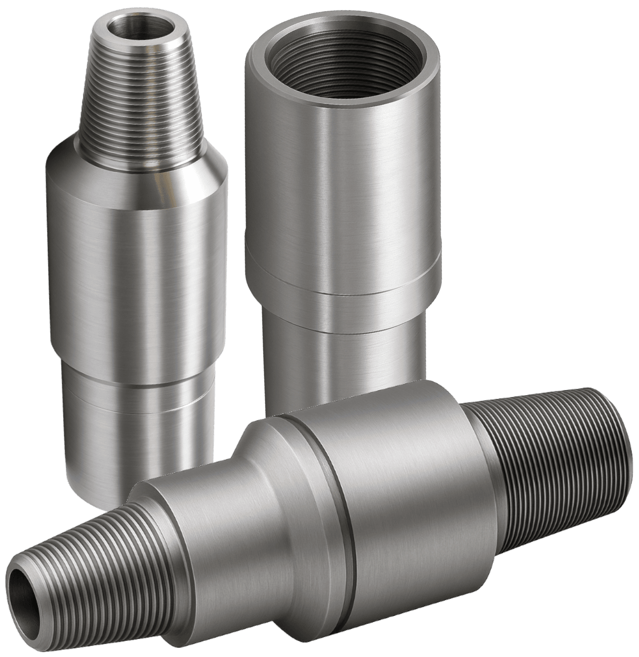 Переводники для бурильных колонн — это элементы бурильного инструмента, предназначенные для соединения деталей бурильной колонны с различными типами или размерами резьбы. Они обеспечивают совместимость между бурильными трубами, замками, утяжеленными трубами, стабилизаторами, турбобурами и другими узлами буровой компоновки низа колонны. От качества и прочности переводников напрямую зависит надежность бурения и безопасность эксплуатации оборудования.