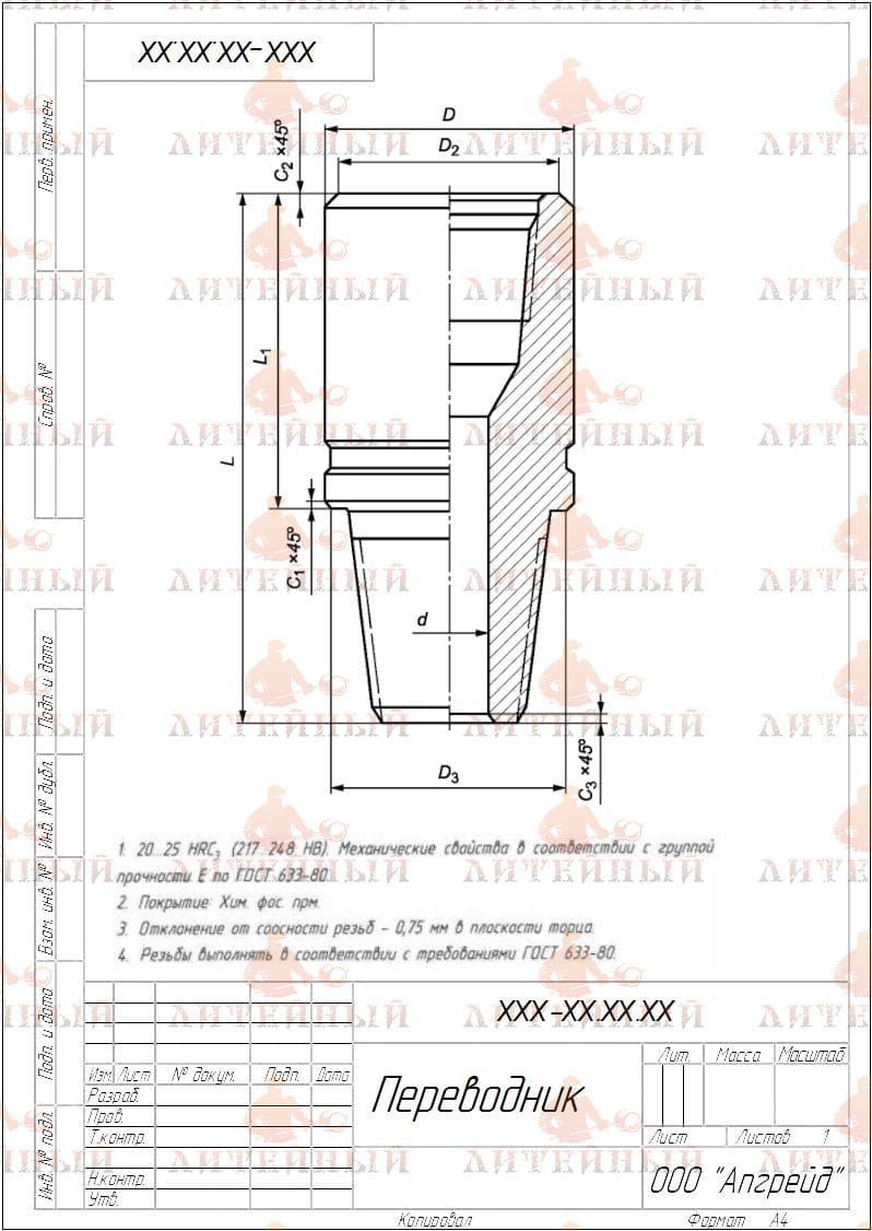 - Переводники для бурильных колонн и бурильных труб других типоразмеров по требованию Клиента.