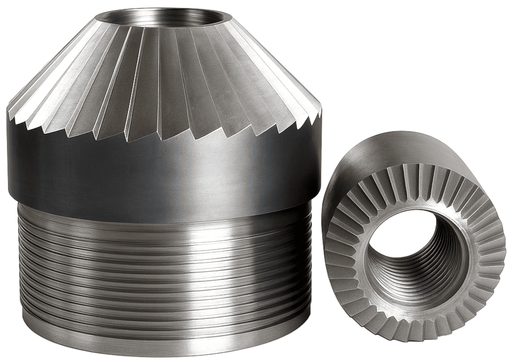 Все детали проходят закалку и отпуск до твердости не менее HRC 32–38, обеспечивающей прочность и износостойкость резьбовых соединений.