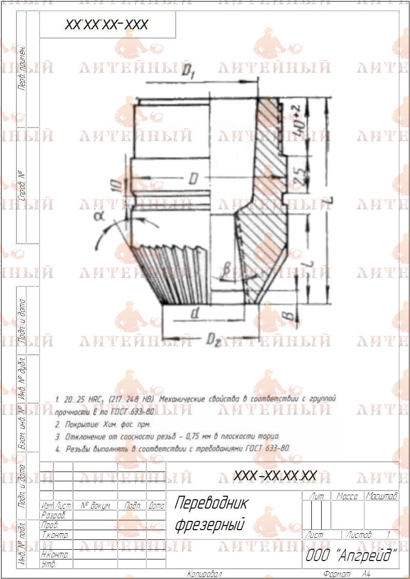 ООО Апгрейд оказывает услуги по изготовлению переводников фрезерных любой сложности на заказ с учетом всех требований Клиента: