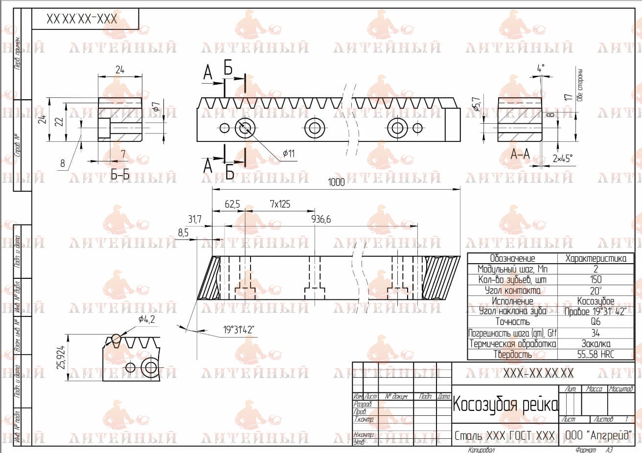 ООО Апгрейд оказывает услуги по изготовлению косозубых реек любой сложности на заказ по чертежам с учетом всех требований Клиента: