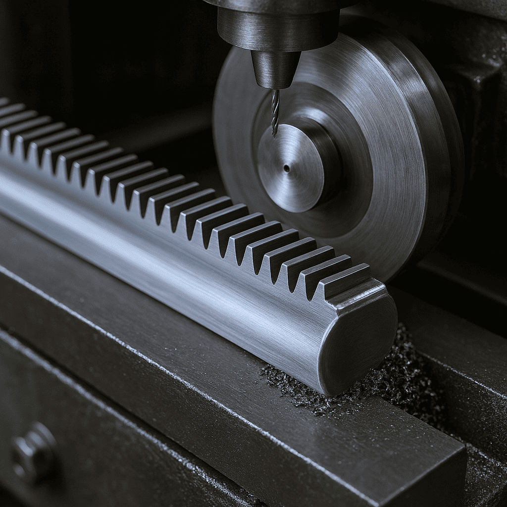 Проектирование нестандартной рейки требует точного расчёта модуля, межосевого расстояния, формы и угла профиля зуба. Часто создаются рейки с переменным шагом, специальной направляющей геометрией или интеграцией с другими элементами конструкции — например, с валами, втулками, направляющими или крепёжными фланцами.