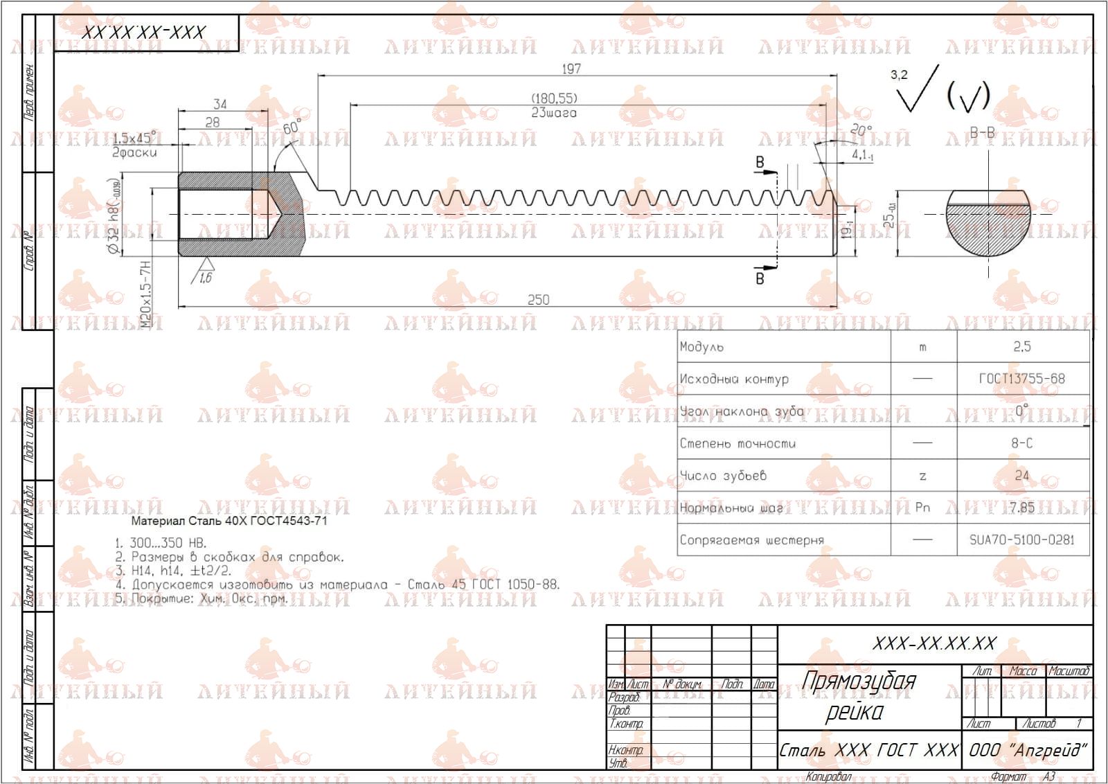 ООО Апгрейд оказывает услуги по изготовлению нестандартных зубчатых реек любой сложности на заказ по чертежам с учетом всех требований Клиента: