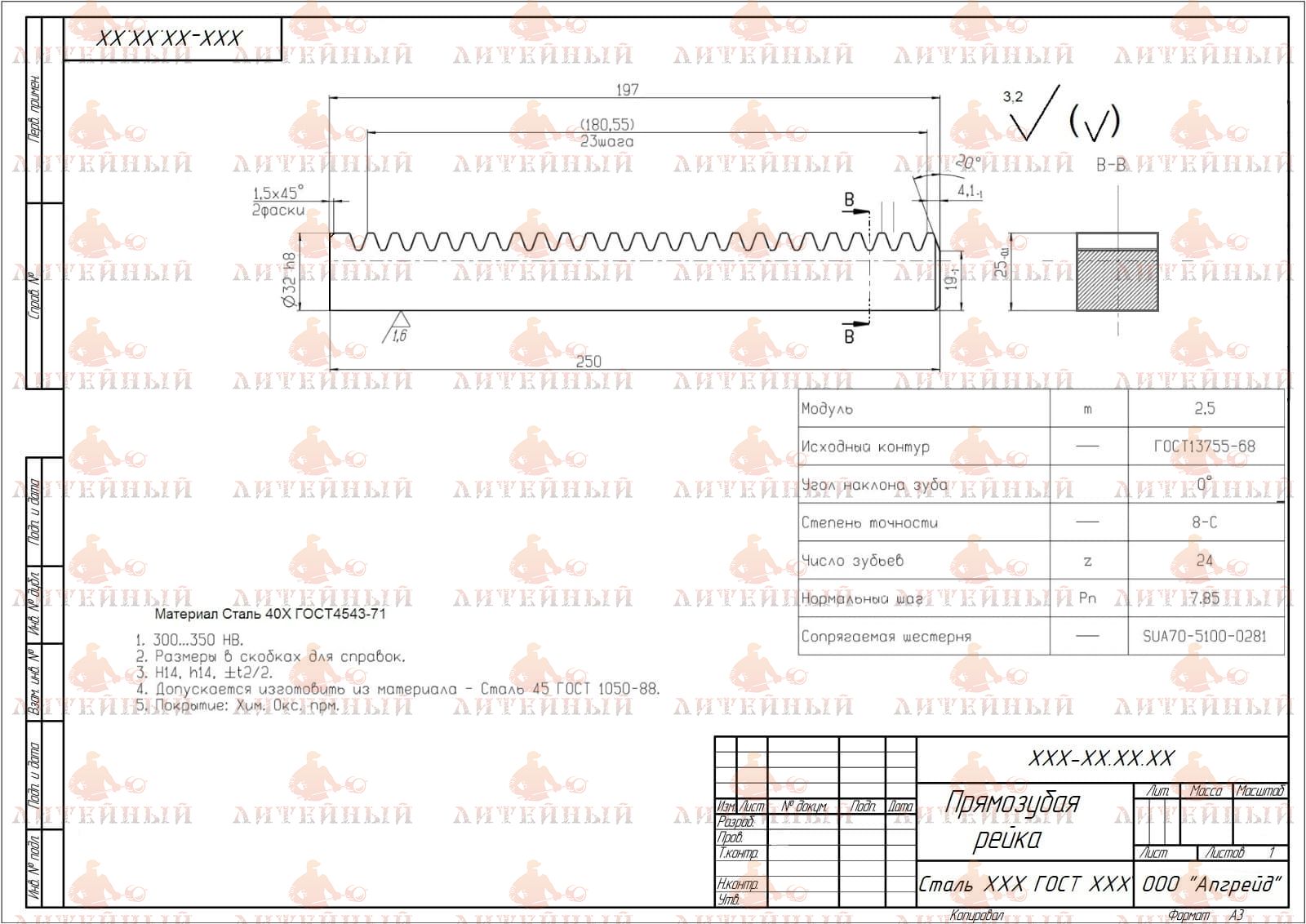 ООО Апгрейд оказывает услуги по изготовлению прямозубых реек любой сложности на заказ по чертежам с учетом всех требований Клиента: