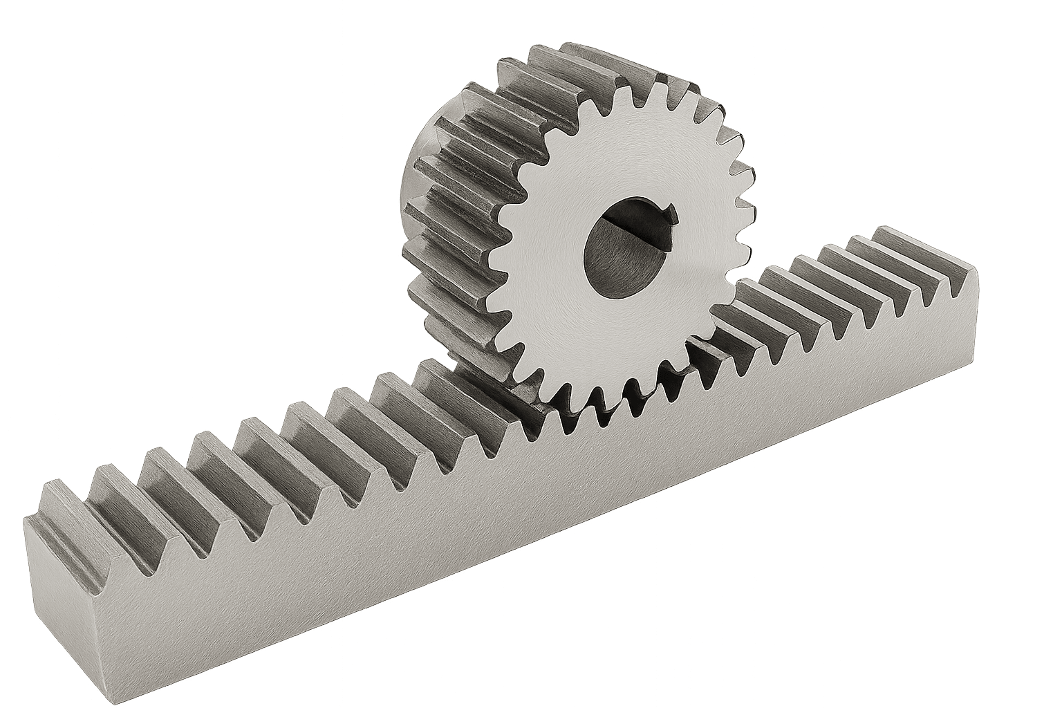 Прямозубые рейки — это линейные зубчатые элементы, служащие для преобразования вращательного движения шестерни в поступательное или наоборот. По сути, это зубчатое колесо, «развёрнутое» в линию: зубья расположены параллельно и имеют прямую форму, без наклона, что обеспечивает простую и точную передачу движения.