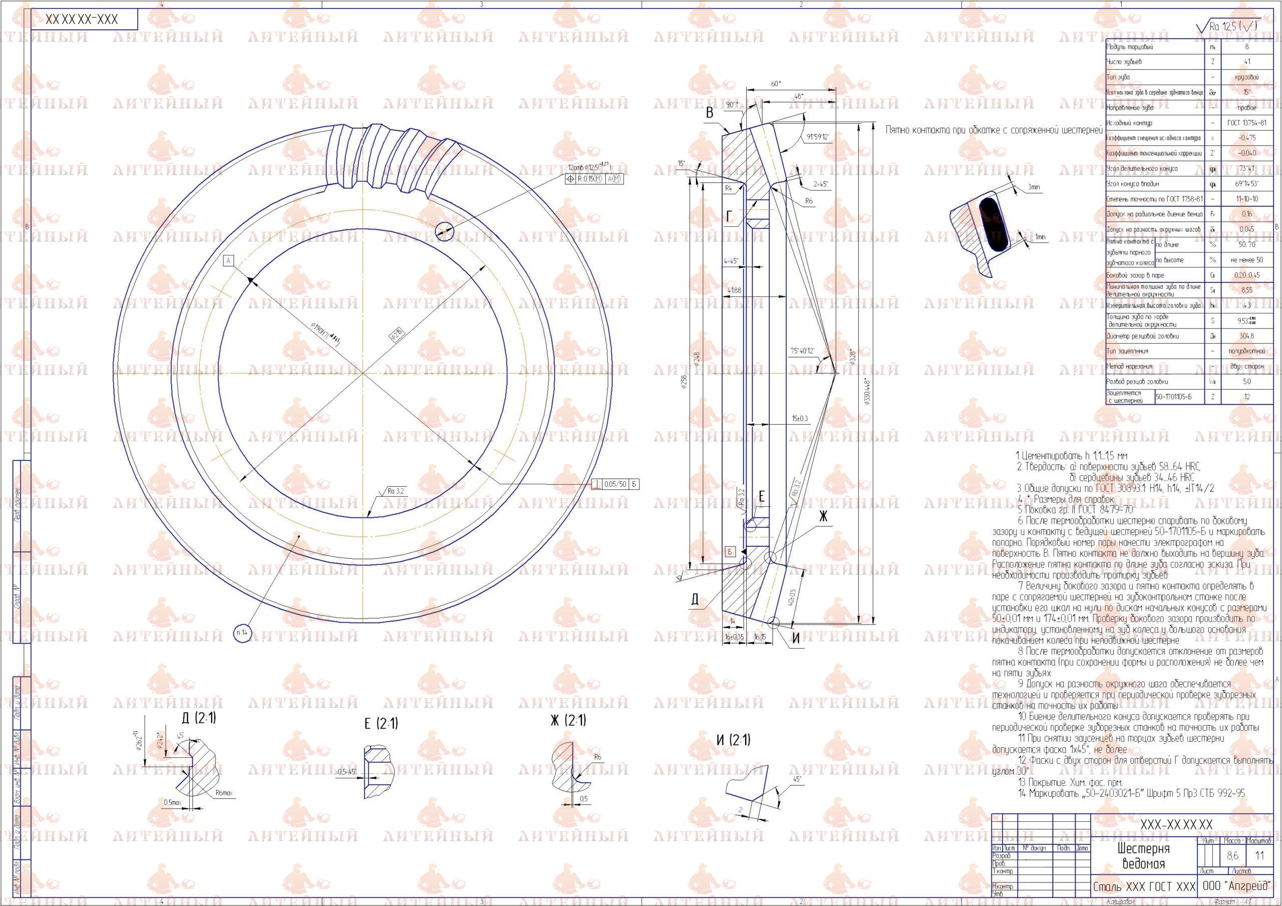 - Изготовление конических гипоидных шестерней с нуля (включая разработку чертежей и проектирование 3D-модели детали).