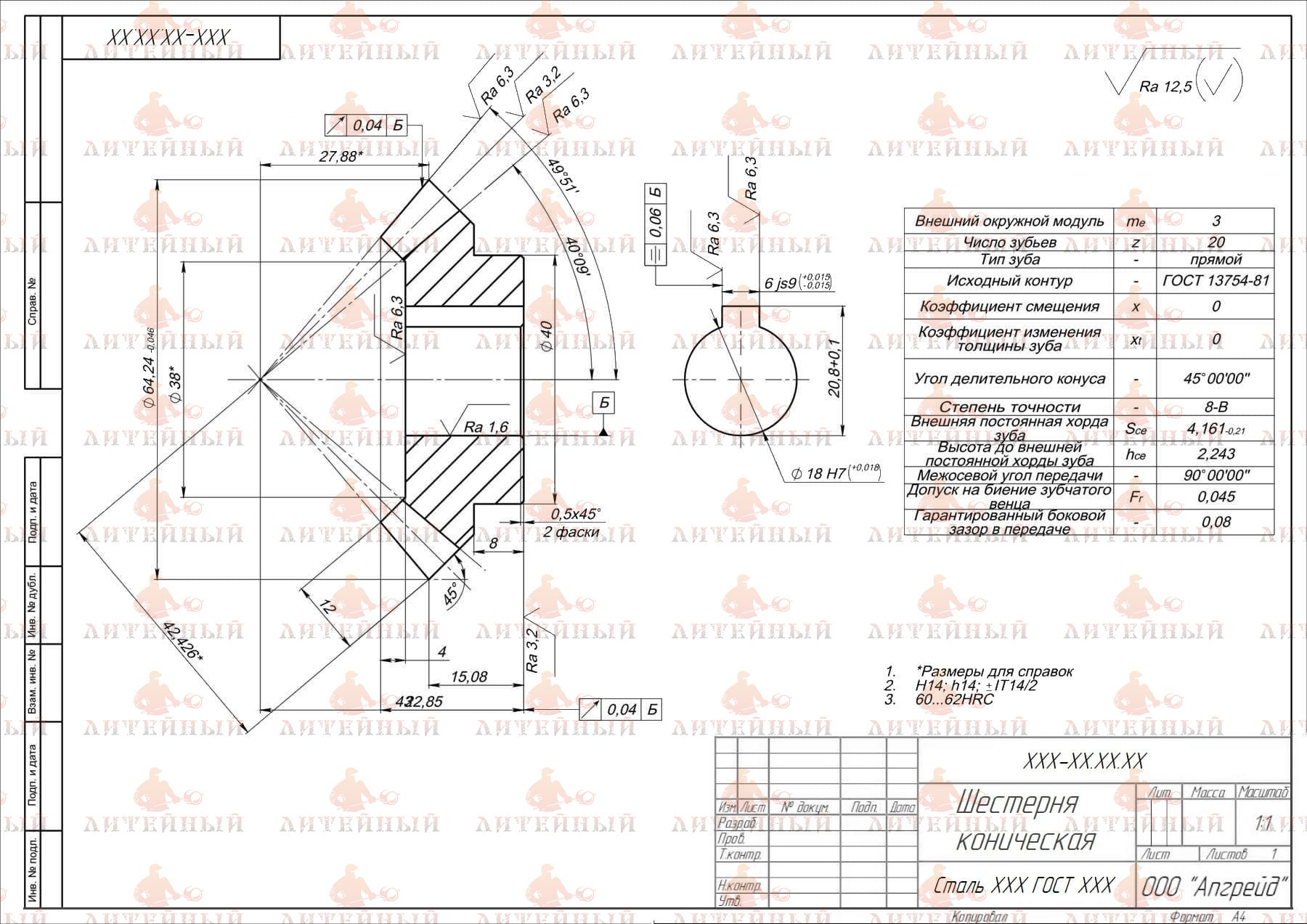 ООО Апгрейд оказывает услуги по изготовлению конических прямозубых шестерней любой сложности на заказ по чертежам с учетом всех требований Клиента: