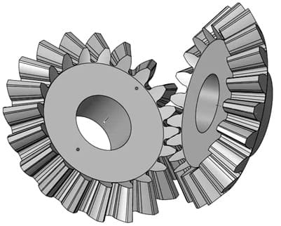 Коническая прямозубая шестерня представляет собой зубчатое колесо, у которого зубья нарезаны по образующей конуса и расположены радиально, перпендикулярно к образующей. Пара таких колёс служит для передачи вращения между пересекающимися валами (чаще всего под углом 90°) без смещения осей. Простая форма зуба облегчает производство и монтаж, а жёсткое зацепление обеспечивает передачу значительных крутящих моментов при умеренных скоростях.