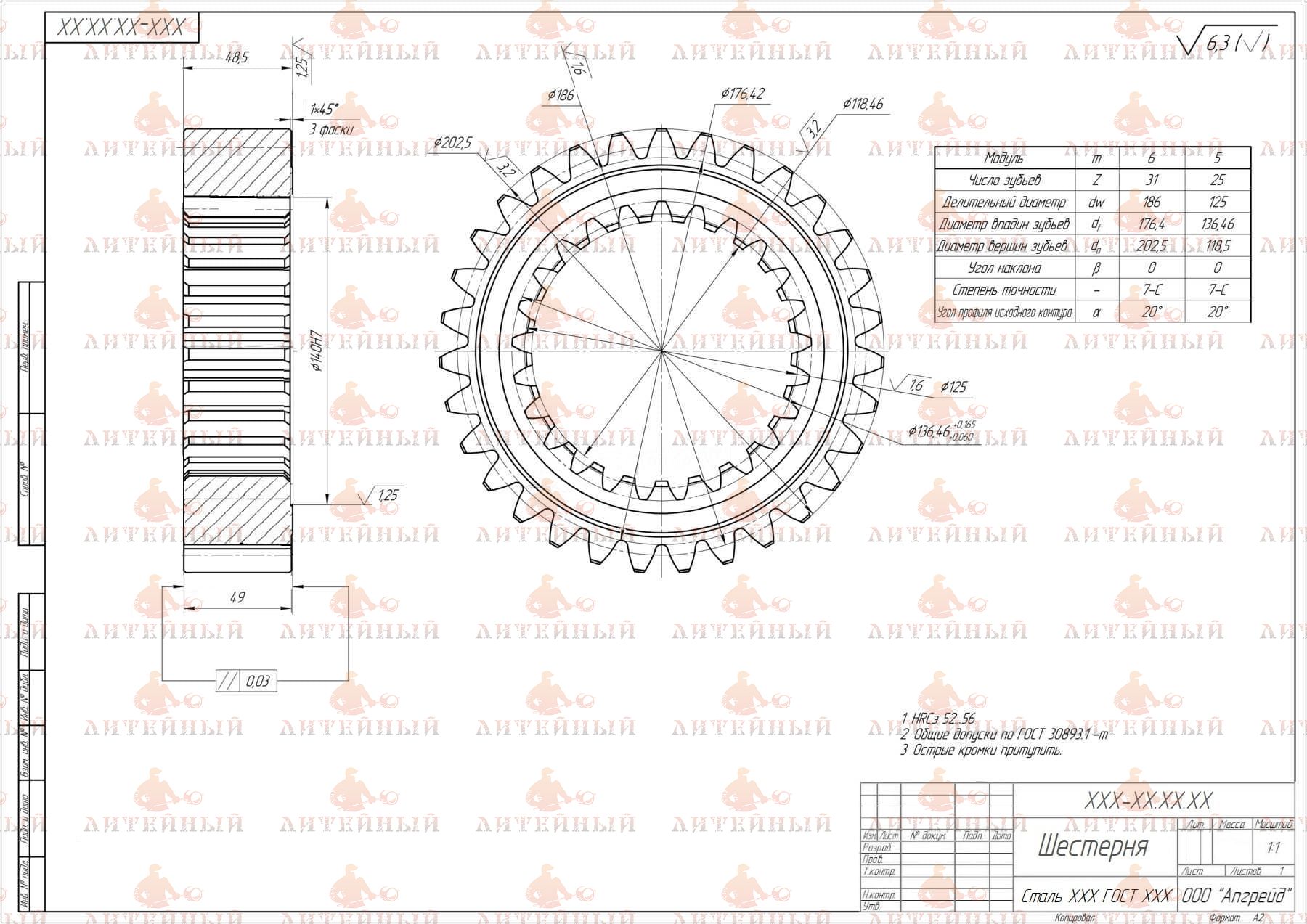- Изготовление шестерней с внутренним зацеплением по образцу при отсутствии чертежей (востребовано при импортозамещении и изготовлении деталей для спецтехники).