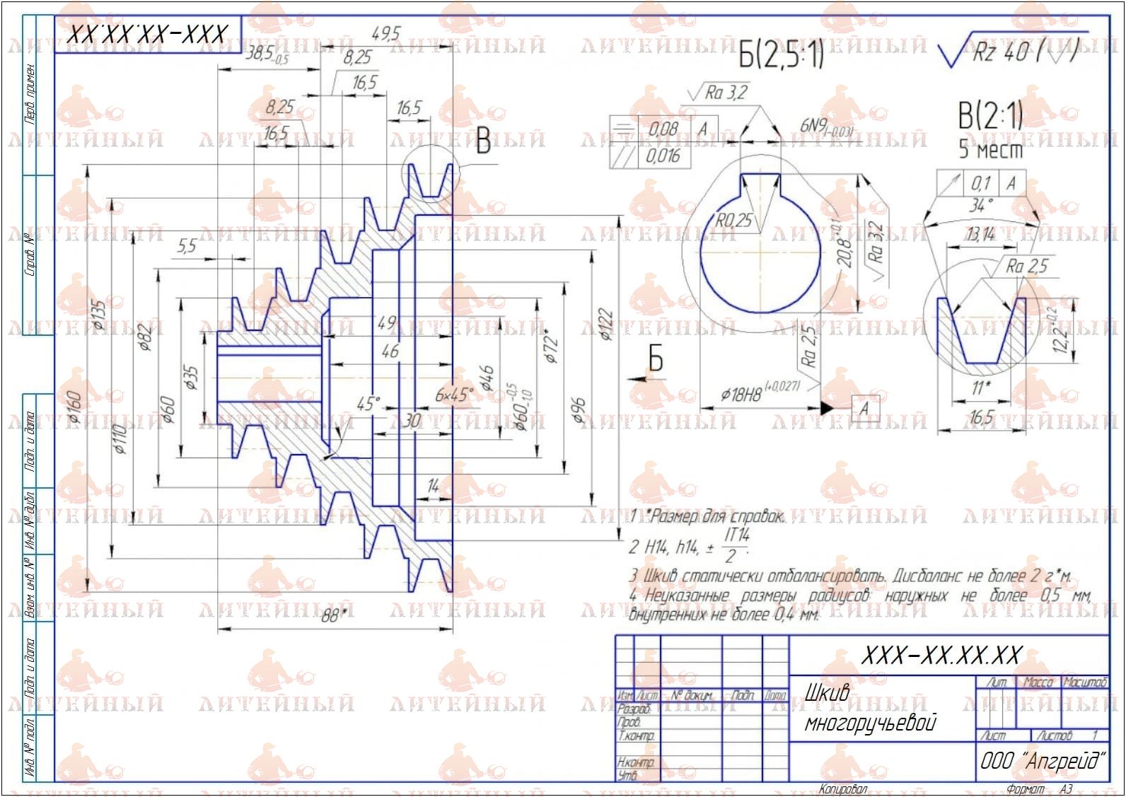 - Изготовление шкивов по образцу при отсутствии чертежей (востребовано при импортозамещении и изготовлении деталей для спецтехники).