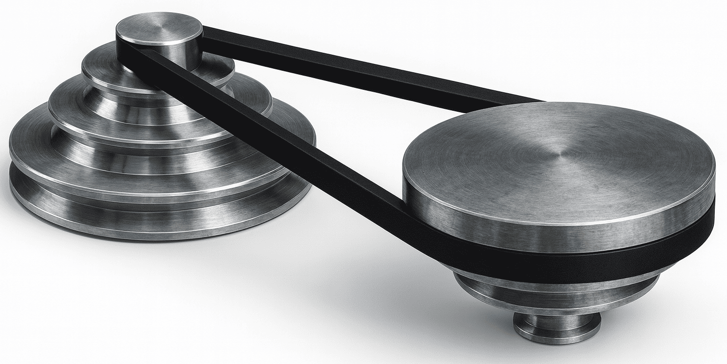 Многоручьевой шкив обеспечивает синхронную работу нескольких ременных ветвей, повышает надёжность привода и снижает вероятность проскальзывания. Такая конструкция используется там, где требуется стабильная передача большого крутящего момента при компактных габаритах механизма.