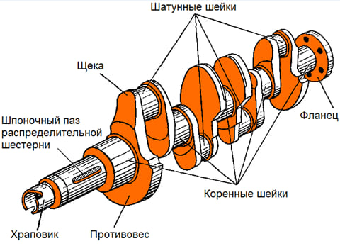 - Диаметр и число коренных и шатунных шеек – определяют прочность на изгиб и кручение, а также допустимые обороты.