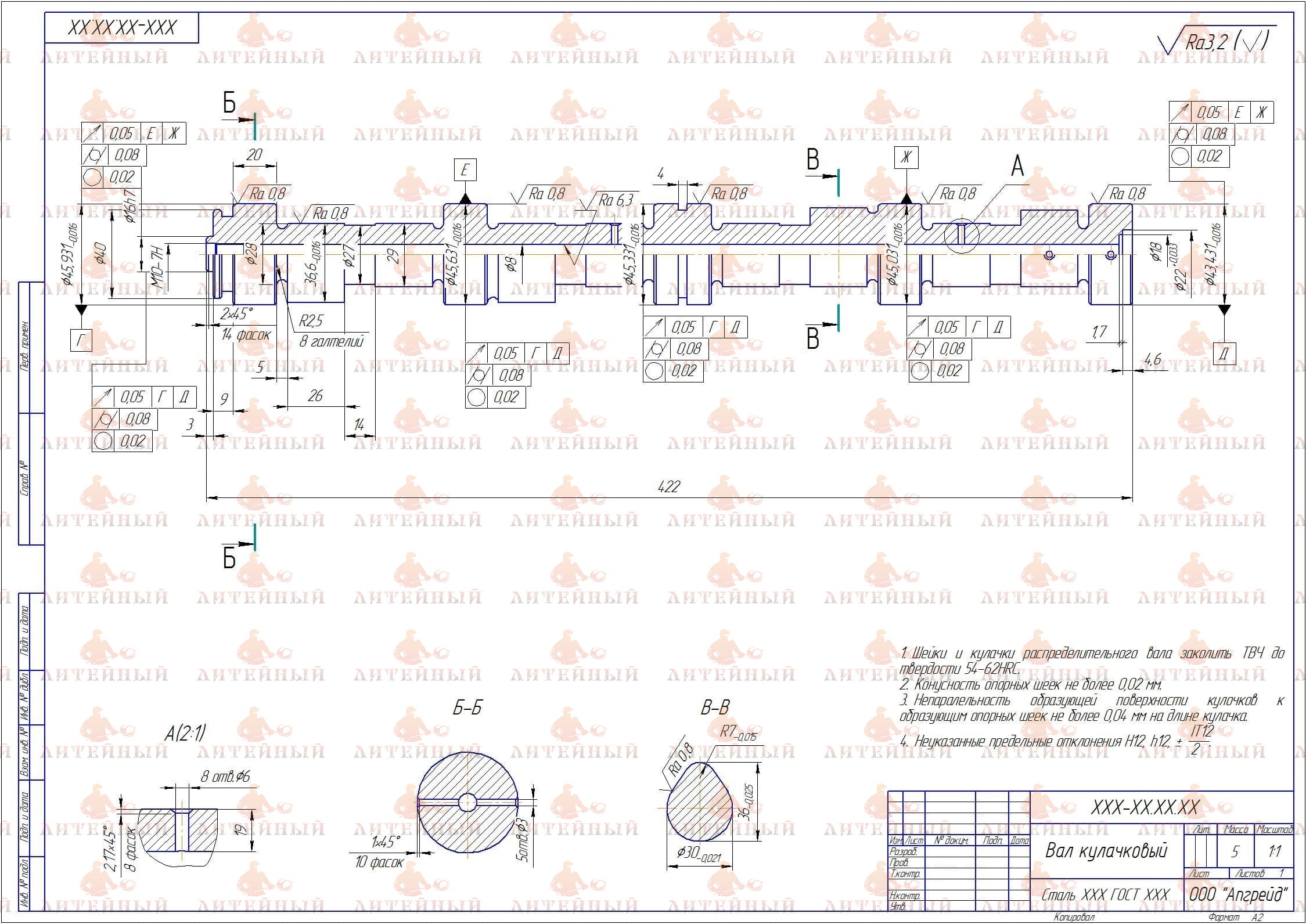 - Изготовление кулачковых валов по образцу при отсутствии чертежей (востребовано при импортозамещении и изготовлении деталей для спецтехники).