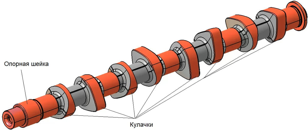 - Угловое расположение кулачков – обеспечивает правильную фазировку работы цилиндров или механизмов.
