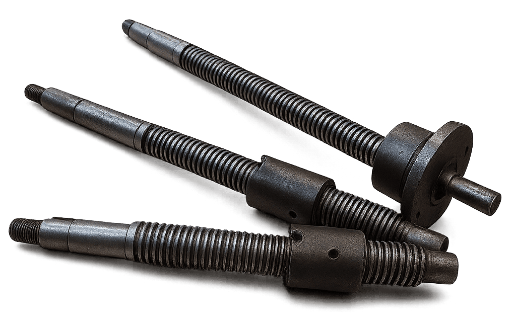 - Гайки скользящих пар: бронзы (БрАЖ, БрОФ и др.), латуни, серый/высокопрочный чугун, полимеры/композиты (ПА-6G, ПТФЭ-бронза, ПЭК).