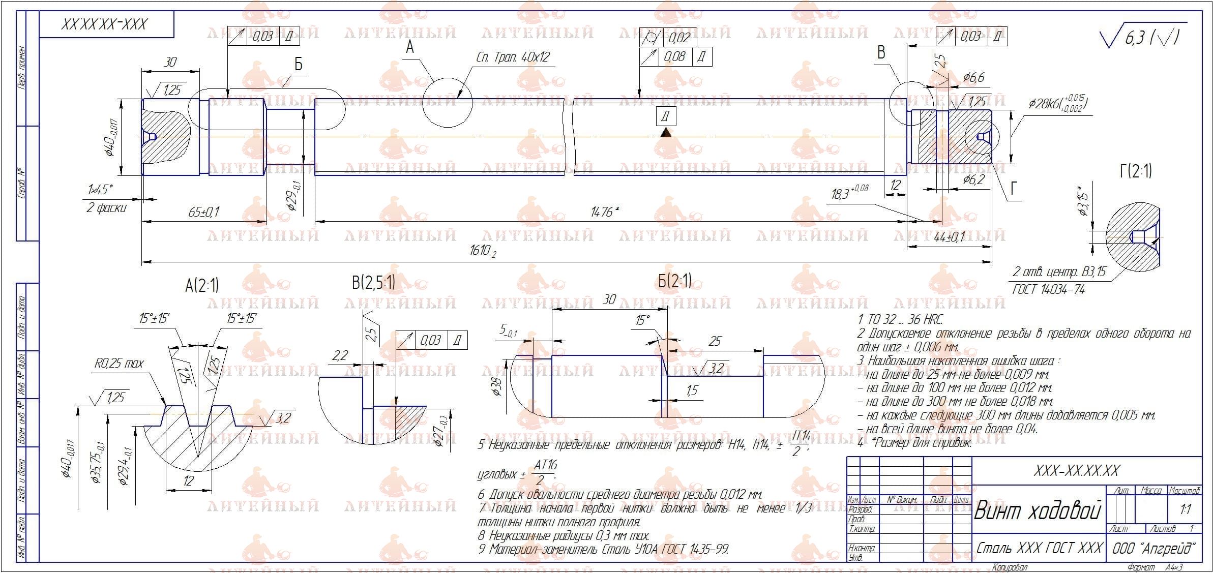 ООО Апгрейд оказывает услуги по изготовлению ходовых винтов любой сложности на заказ по чертежам с учетом всех требований Клиента: