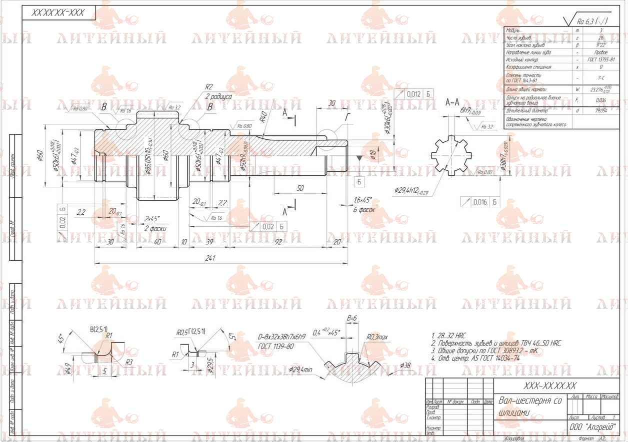 - Изготовление шлицевых валов с нуля (включая разработку чертежей и проектирование 3D-модели детали).