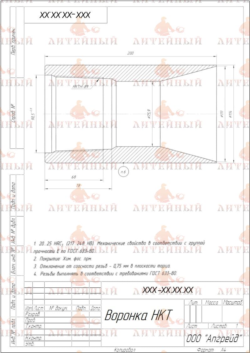 - Изготовление воронок НКТ с нуля (включая разработку чертежей и проектирование 3D-модели детали с учетом требуемых параметров).