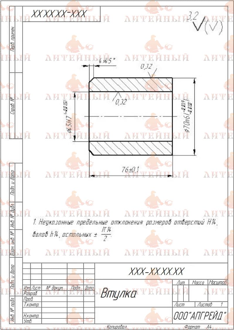 ООО Апгрейд оказывает услуги по изготовлению цилиндрических втулок любой сложности на заказ по чертежам с учетом всех требований Клиента: