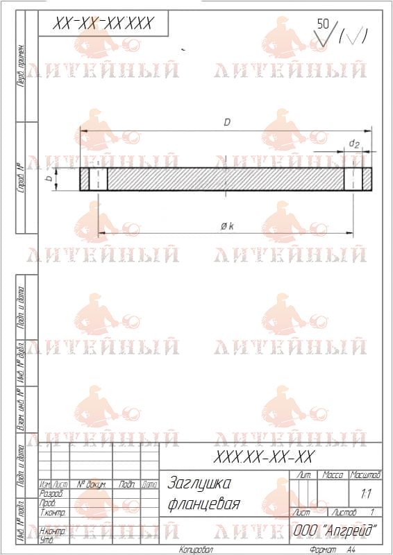 ООО Апгрейд оказывает услуги по изготовлению фланцевых плоских заглушек ГОСТ 12836-67 на заказ по чертежам с учетом всех требований Клиента.