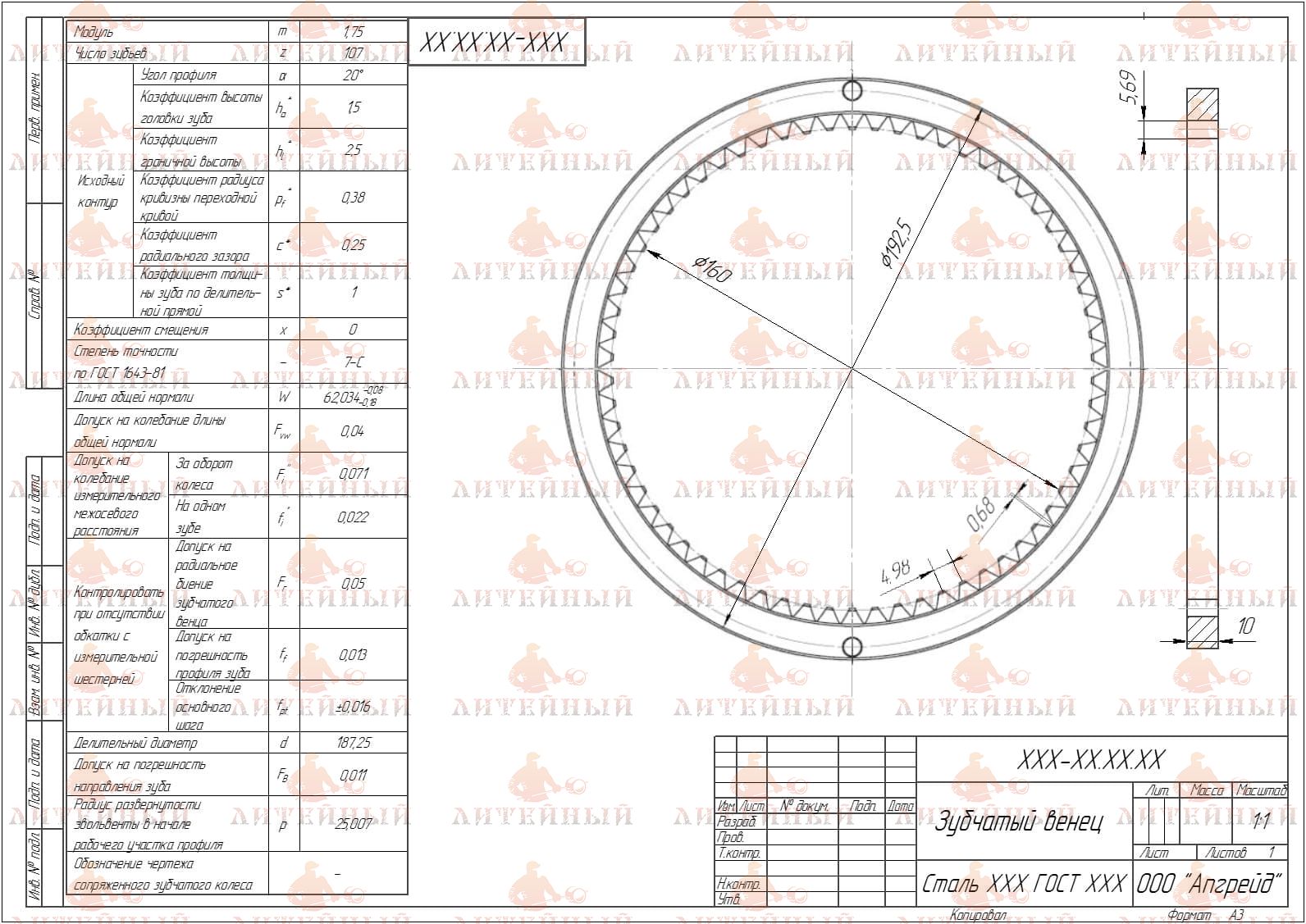 ООО Апгрейд оказывает услуги по изготовлению зубчатых венцов с внутренним зацеплением зубьев любой сложности на заказ по чертежам с учетом всех требований Клиента:
