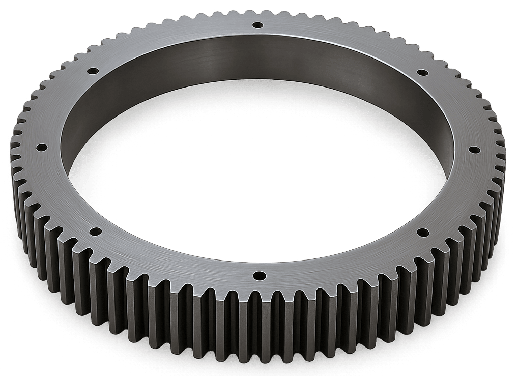 Зубчатые венцы с наружным зацеплением зубьев — это кольцевые элементы, на наружной цилиндрической поверхности которых нарезаны зубья, предназначенные для передачи вращательного движения между сопряжёнными деталями. Чаще всего такие венцы устанавливаются на ободах барабанов, маховиков, шестерённых соединений или корпусов крупногабаритных механизмов, где требуется передача высоких крутящих моментов при сравнительно низких скоростях вращения.