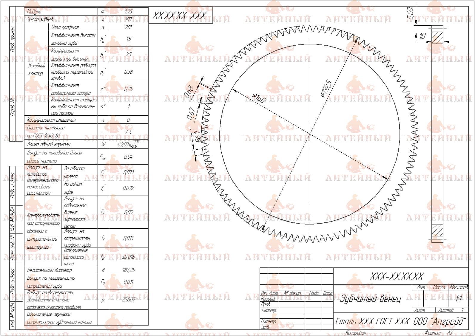 - Изготовление зубчатых венцов по образцу при отсутствии чертежей (востребовано при импортозамещении и изготовлении деталей для спецтехники).