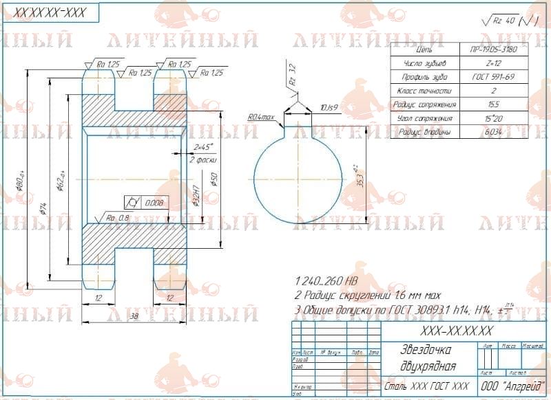 - Изготовление двухрядных звездочек с нуля (включая разработку чертежей и проектирование 3D-модели детали).