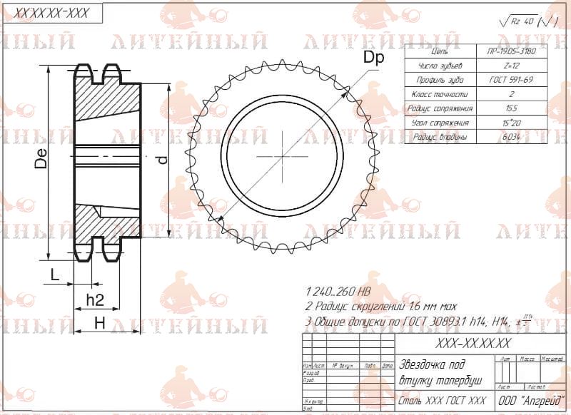 ООО Апгрейд оказывает услуги по изготовлению звездочек под втулку тапербуш любой сложности на заказ по чертежам с учетом всех требований Клиента: