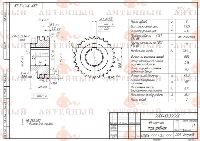 ООО Апгрейд оказывает услуги по изготовлению трехрядных звездочек любой сложности на заказ по чертежам с учетом всех требований Клиента: